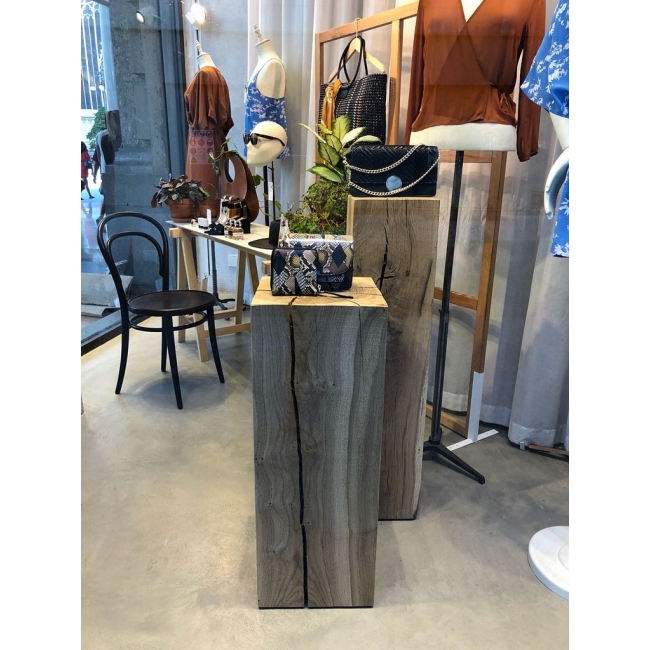 Elke massief eiken sokkel wordt geschaafd en zorgvuldig geschuurd, waarbij de natuurlijke eigenschappen van het hout zichtbaar blijven. Denk aan knoesten, scheuren en barsten: precies die details die zorgen voor een warme, levendige en unieke uitstraling. Dit maakt iedere houten zuil niet alleen functioneel, maar ook een karaktervol onderdeel van uw interieur of presentatie. Geschikt voor zowel binnen als buiten gebruik.