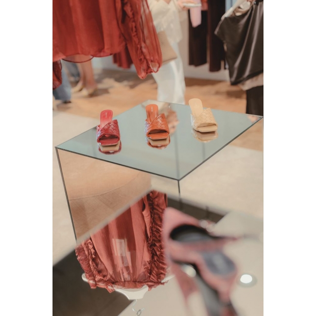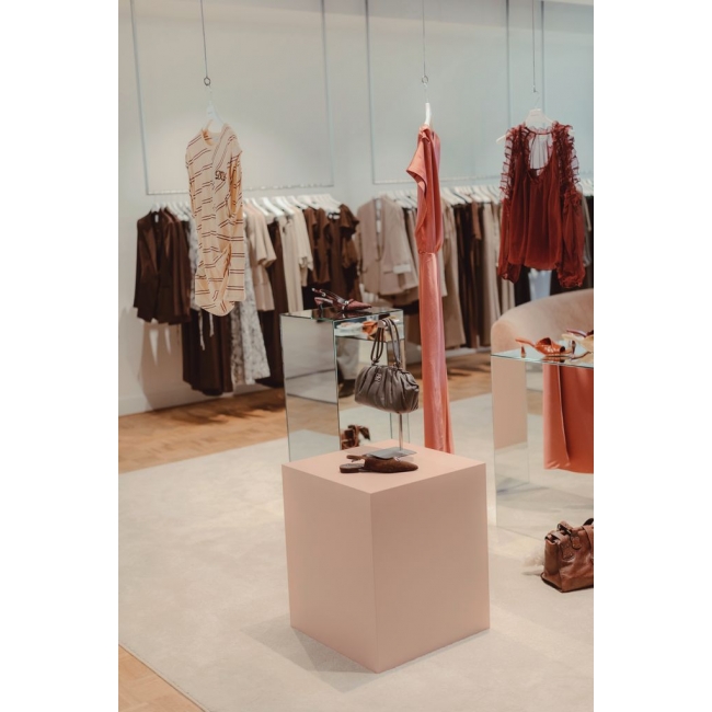 Een spiegel sokkel doet meer dan alleen dragen. De reflecterende oppervlakken zorgen ervoor dat licht, kleur en vorm worden teruggekaatst. Daardoor is uw object vanuit meerdere hoeken zichtbaar. Dit trekt automatisch de aandacht en vergroot de visuele impact. In een etalage, op een beurs of als winkel display creëert de sokkel bovendien een gevoel van extra ruimte. Hij gaat subtiel op in de omgeving, terwijl het object zelf juist sterker naar voren komt. Dat maakt deze sokkel ideaal voor schoenen, accessoires of exclusieve producten die echt mogen opvallen.