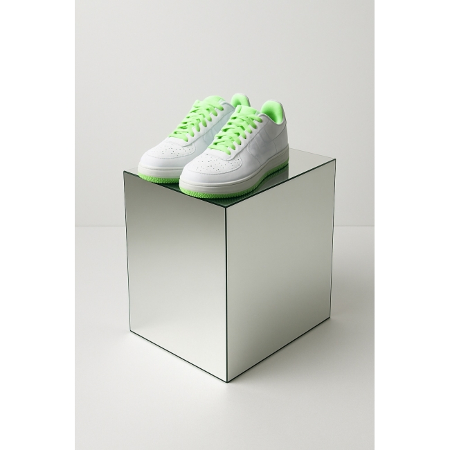 Een spiegel sokkel doet meer dan alleen dragen. De reflecterende oppervlakken zorgen ervoor dat licht, kleur en vorm worden teruggekaatst. Daardoor is uw object vanuit meerdere hoeken zichtbaar. Dit trekt automatisch de aandacht en vergroot de visuele impact. In een etalage, op een beurs of als winkel display creëert de sokkel bovendien een gevoel van extra ruimte. Hij gaat subtiel op in de omgeving, terwijl het object zelf juist sterker naar voren komt. Dat maakt deze sokkel ideaal voor schoenen, accessoires of exclusieve producten die echt mogen opvallen.